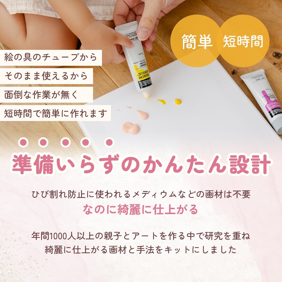 フィンガーペイントキットは、赤ちゃんから大人まで楽しめるペイントキットです。必要な材料は全て入っており、手軽に楽しめ、汚れない方法で作成するのでお家でも安心して遊べます。水色ベースの爽やかなカラー配色が特徴で、創造力を存分に発揮できます。