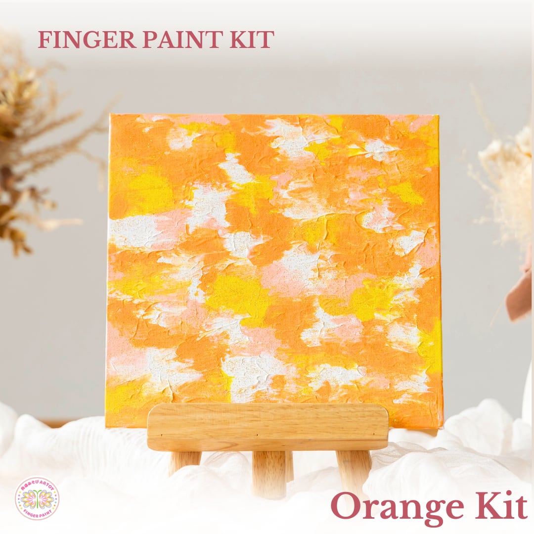 フィンガーペイントキットは、赤ちゃんから大人まで楽しめるペイントキットです。必要な材料は全て入っており、手軽に楽しめ、汚れない方法で作成するのでお家でも安心して遊べます。オレンジベースの温かみある爽やかなカラー配色が特徴で、創造力を存分に発揮できます。